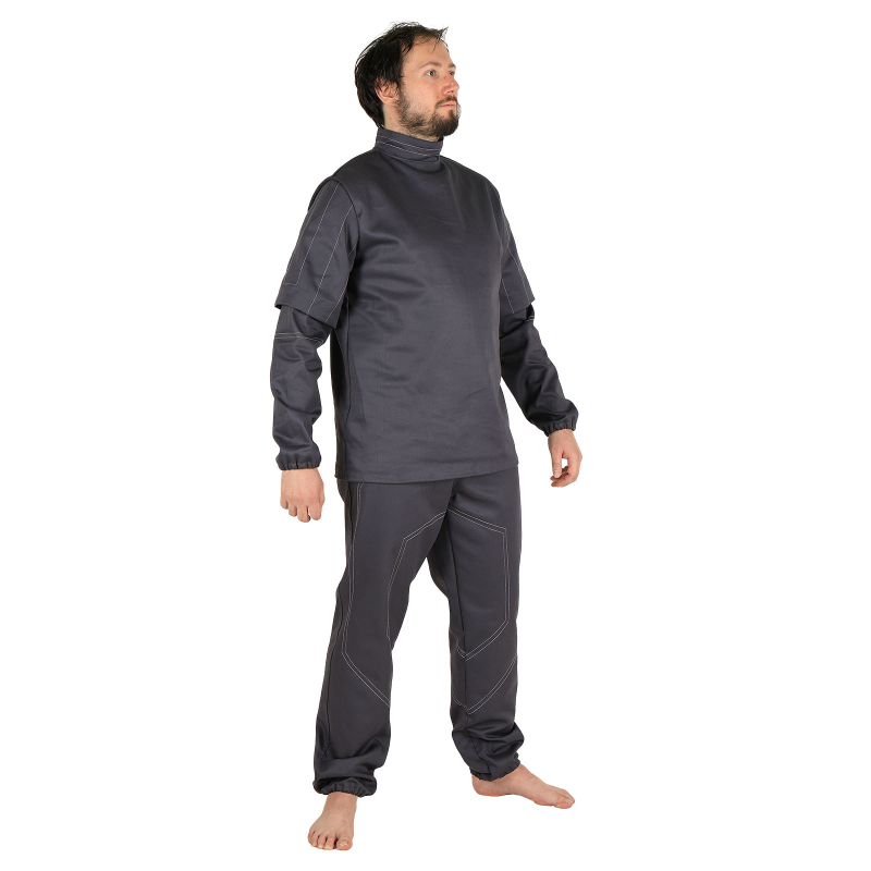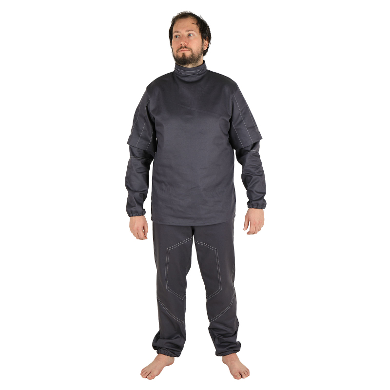 Vydáš se na dobrodružství po galaxii na míle daleko? Chystáš se vyrobit si kostým, který je univerzální do světa Star Wars nebo třeba Fallout? Nově jsme do naší nabídky zařadili Pašeráckou kombinézu, ideální například pro tvou výrobu mandalorianského kostýmu. Můžeš ho ale také využít pro jakýkoli postapo nebo military kostým dle libosti. Kvalita dílny imago Pašerácká kombinéza je vyrobená z odolného a pevného kepru. Celý set je prošívaný jak praktickým, tak odzdobným švem. Kombinéza je silně inspirovaná seriálem Mandalorian . Je proto vhodný jako základ pro tvůj první (nebo třeba další) mandaloriánský kostým. Pro pozemšťany i mimozemšťany Pašerácká kombinéza se skládá ze dvou částí - svrchní části - tuniky a kalhot. Oba tyto kousky jsou unisexového střihu, takže padnou všem! Od hubených kaminoanů, až po svalnaté lovce odměn. Tunika má stojáček se zapínáním na suchý zip vzadu na krku a dvojié rukávy. Spodní dlouhý rukáv je u zápěstí zpěvněný gumičkou, aby se ti kombinéza nevysunovala zpod chrániče předloktí. Kalhoty jsou v pase na šňůrku, abys je mohl dle potřeby povolit nebo přitáhnout. Nohavice mají rovný, praktický střih a jsou stejně jako svršek prošívané kontrastní nití. Doplňky pro lovce i pašeráky Pašerácká kombinéza je ideální základ pro mandalorianský kostým a k němu samozřejmě patří také opasek s holsterem na blaster. Že nevíš, kde ho sehnat? Nic se neboj, odpověď je blíž, než si myslíš! Pašerácký opasek z naší dílny nabízí možnost, jak důležitý doplňek zakoupit na jednom místě. K opasku si můžeš pořídit kapsičky Jawa nebo Rancor, které dokonale doplní tvůj mandalorianský outfit. Materiály pro výrobu Ať už plánuješ kostým futuristického vojáka, mandaloriana nebo třeba osamělého postapo scavengera ve stylu Falloutu, nezapomeň, že v naší nabídce najdeš také potřebné materiály pro výrobu cosplay a kostýmu, a to včetně populární EVA pěny nebo termoplastu známého jako sintra. Nevíš, jakou velikost vybrat? Vždy doporučujeme sáhnout po větší velikosti, pokud jsou tvé míry hraniční.Velikost modelu je 180 cm a na sobě má velikost L.