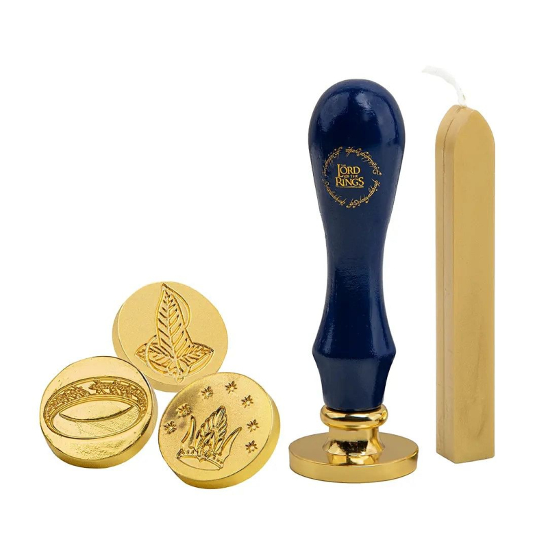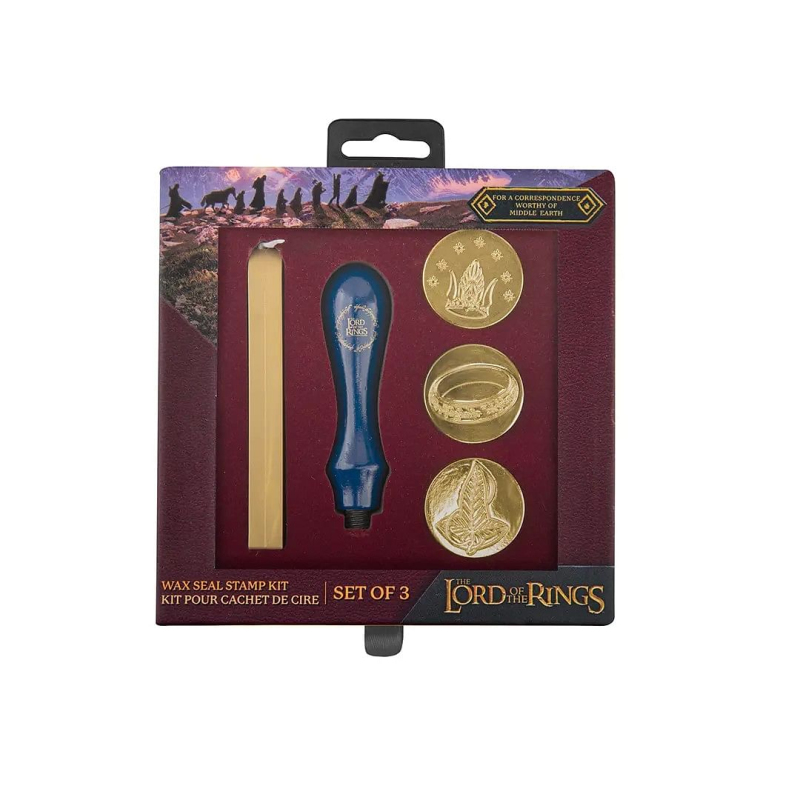 S pečetní sadou pro fanoušky Pána prstenů budeš posílat dopisy a přáníčka s nádechem Středozemě. Součástí sady jsou 1 pečetidlo, 3 razidla s různými symboly (Prsten moci, elfí lístek a koruna krále Elessara) a 1 ks pečetícího vosku.