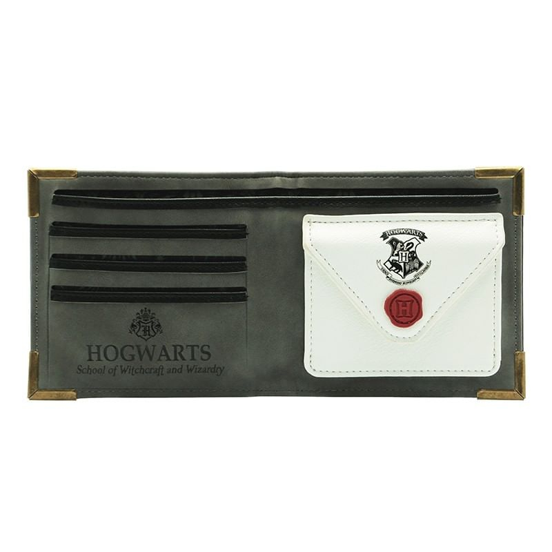 Pěkná peněženka pro malé i velké fanoušky Harry Pottera a jeho kouzelnických příběhů z Bradavic! Peněženku zdobí kovový erb bradavické školy čar a kouzel a uvnitř ukryjete lecjaký poklad, včetně vašich platebních a ID karet, jízdenek, vstupenek, bankovek i mincí. Kapsa na mince má podobu dopisu z Bradavic, který obdržel Harry v první knize.