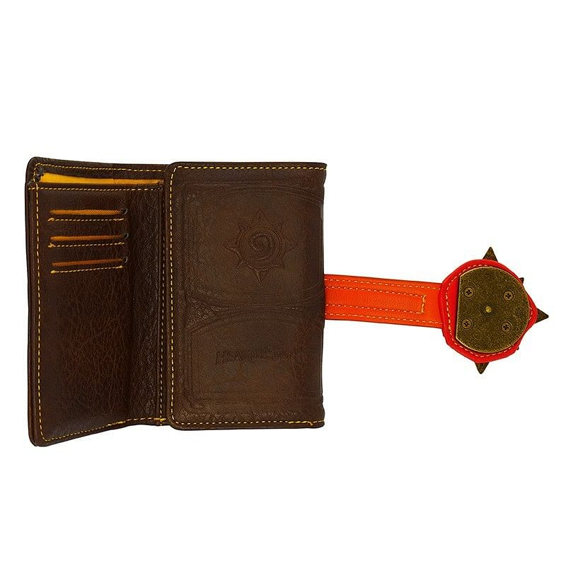 S peněženkou pro hráče online karetní hry Hearthstone budete pečovat o své peníze stejně, jako o balíček nejcenějších karet! Jedinečná peněženka nabízí sloty na vaše ID a platební karty, kapsu na zip pro mince a prostor pro bankovky - tedy vše, co správná peněženka má obsahovat, a ještě něco navíc! Její součástí je originální zapínání s logem vaší oblíbené hry.