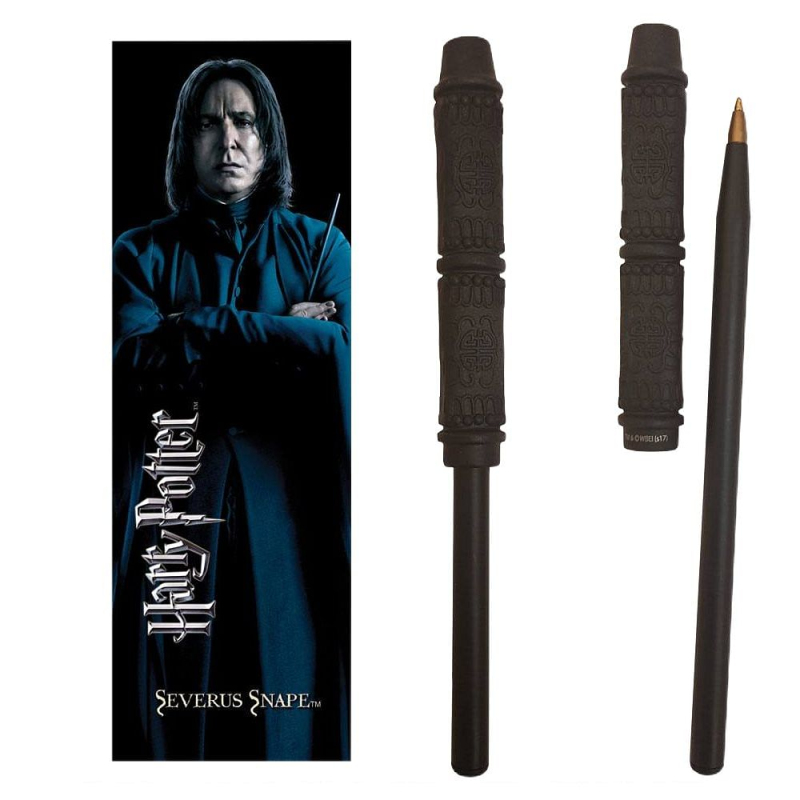 Stylová tužka v podobě kouzelnické hůlky Severuse Snapea a knižní záložka s motivem tohoto hrdiny z filmů o Harry Potterovi.