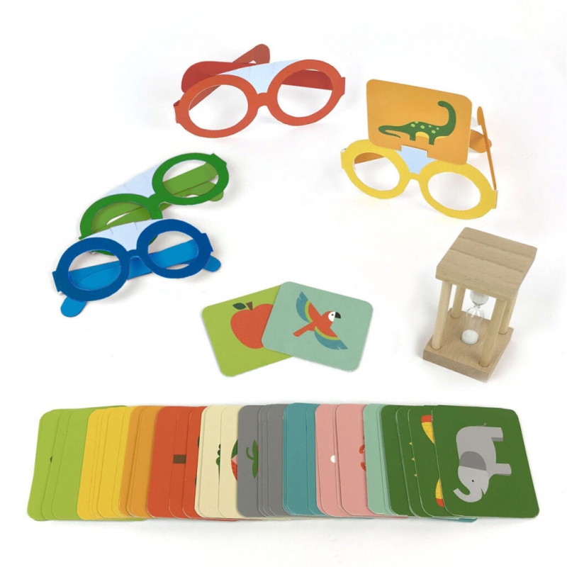 Jsem zvíře? Jsem objekt? Jsem velký/á? Vydávám zvuky? Tolik otázek, tak málo času! Rychlá hra pro celou rodinu, která Vám zaručí hodně smíchu a zábavy. Obsahuje 4 brýle s držákem na kartu, přesýpací hodiny a 50 barevných karet s obrázky. Hra pro 2 až 4 hráče, průměrná doby hry 15 minut. Vyrobeno z recyklovaných materiálů, natištěno inkoustem ze zeleniny. Od 4 do 8 let věku.