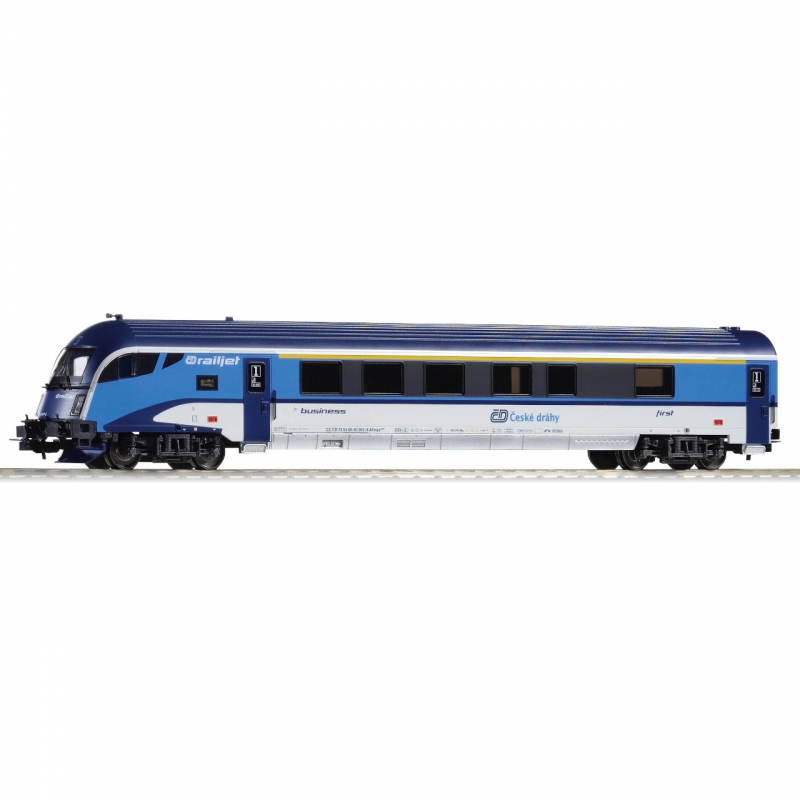 Čtyřnápravový koncový řídící vůz Afmpz 1. třídy Railjet ČD v aktuálním laku a potisku. Bílé/červené LED osvětlení se mění v závislosti na směru jízdy a model je připraven pro snadné dovybavení ovládacím dekodérem. Slouží uceleným soupravám s vagony Railjet, které harmonicky doplní.
