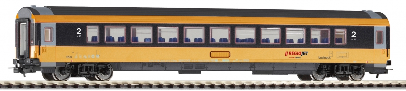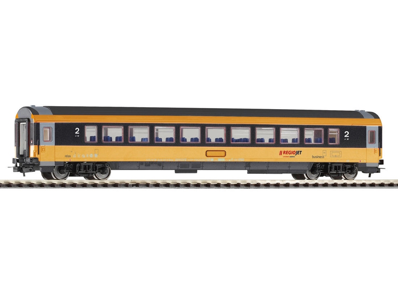 Piko Vagón rychlíku RegioJet - 57647 Německá firma PIKO se zabývá výrobou modelů lokomotiv, vagónu, start setů, kolejiva a kolejových setů. Klasickým výrobkem, kterým se firma PIKO celosvětově proslavila, je modelová železnice. Modely železnice jsou vysoce detailní. Firma PIKO vyrábí modely ve velikostech H0 (měřítko 1:87), G (měřítko 1:25), TT (měřítko 1:120) a N (měřítko 1:160). PIKO modelové železniční výrobky pokrývají nejrůznější potřeby modelářů. Jsou pravidelně testovány a oceňovány v domácím i zahraničním tisku.