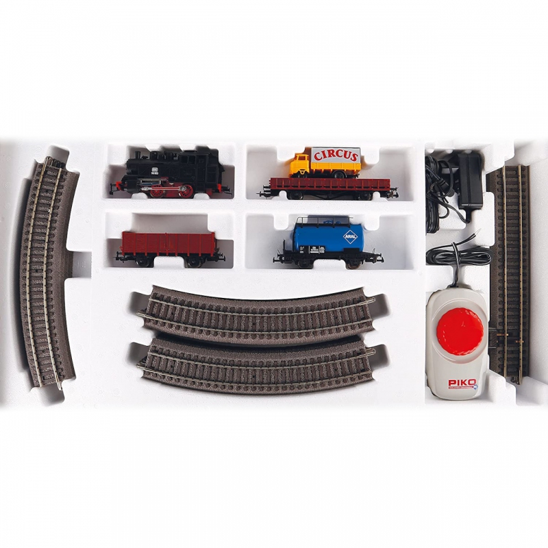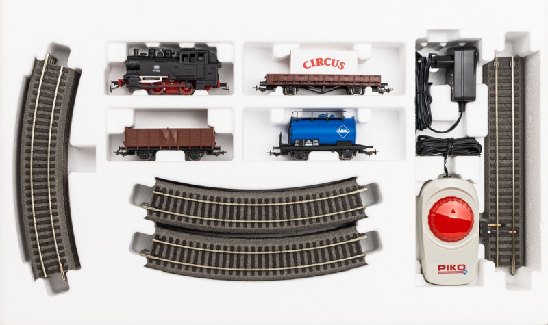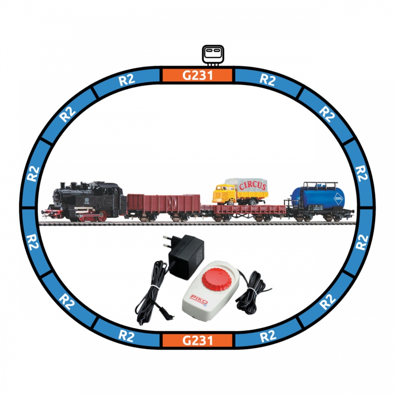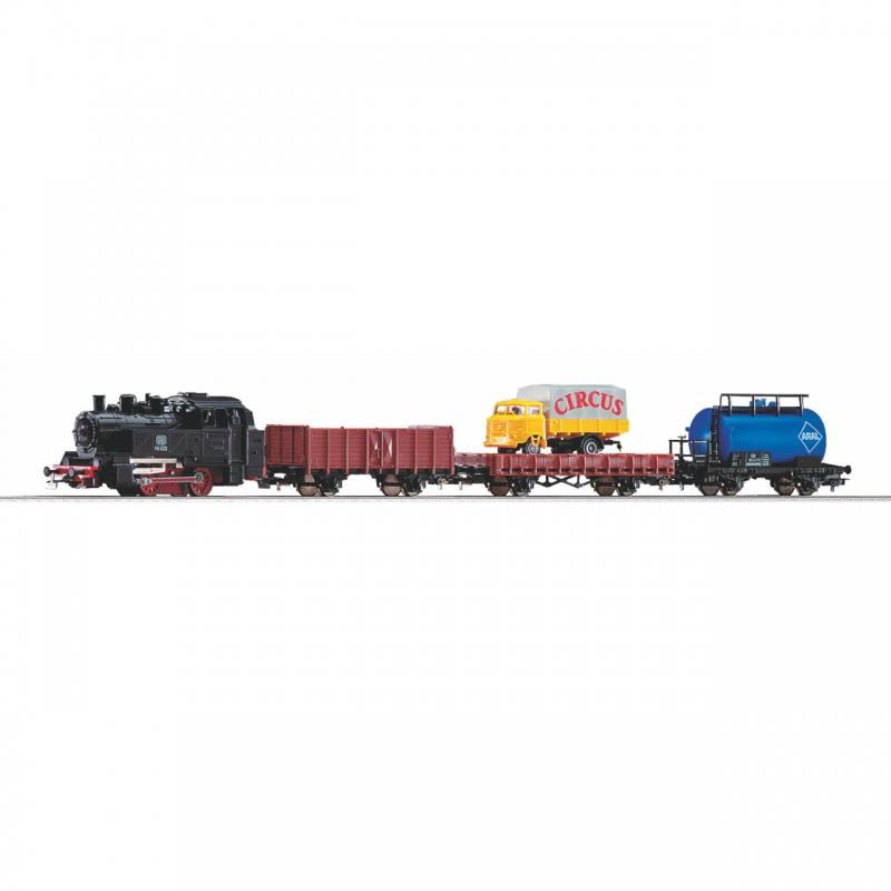 Startovací sada skládající se z parní lokomotivy 0-4-0 BR 98, třech nákladních vozů, z nichž jeden je naložen volně uloženým nákladním autem, základního oválu a analogového ovládání s napájením. Koleje s podložím zajišťují vyšší odolnost a životnost při opakovaném rozebírání. Nákup sady je vhodné doplnit o příslušný spotřební materiál.