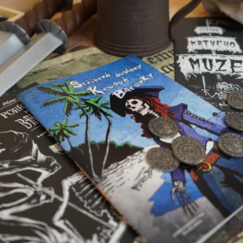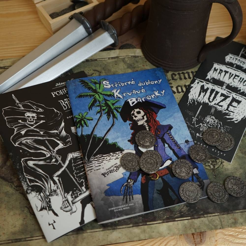 Hej, suchozemská kryso! Chceš slevu, co? Tak poslouchej. Mám tu pro tebe balík, co ti rozbuší srdce víc než basa grogu! Tři příběhy z prohnilýho a prosolenýho světa Pirate Borg, a to všechno za pár zatracenejch dublonů! Nejdřív se rozkoukáš na Bahamách. Je to taková rychlovka pro zelenáče, co se teprv učí držet kormidlo a nevypít si mozek z hlavy. Rozhodni se sám, jestli z toho bude jen krátká mela, nebo začátek pořádný legendy! Pak tě pošlu za pokladem samotný Krvavý Baronky! Čeká tě proklatý souostroví plný kostlivců, divnejch ještěrů a dalších bačudů, co ti chtěj podříznout krk pro pár stříbrňáků. Ukradneš jim ten poklad zpod nosu, nebo skončíš jako potrava pro kraby? A až budeš mít plný kapsy, je čas na pořádnou řežbu v Zátoce mrtvýho! Ukážeš ostatním kapitánům, kdo je tady pánem moří. Krátká, krvavá bitka, která oddělí holobrádky od skutečnejch pirátů. Tak na co čekáš? Popadni tenhle balík, nebo přísahám na svou dřevěnou nohu, že skončíš v podpalubí s krysama! Tohle je šance, jak se stát legendou.