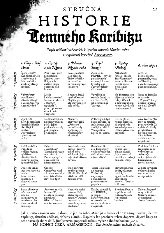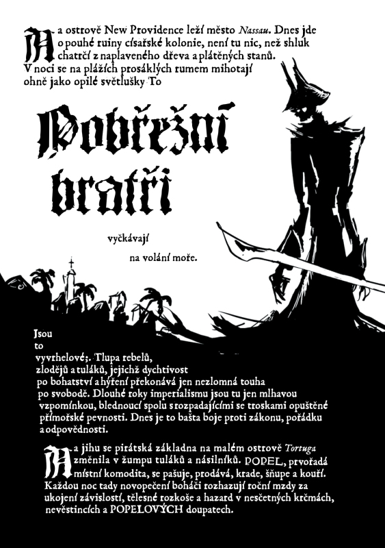 Na mořích leží temnota. Dříve mírumilovné ostrovy vydávají svědectví o hrůzách, které zachvátily celý Temný Karibik. Nekončící válečný stav zplodil nový druh psance – piráta. Jenže místní vody sužují horší věci než lidé. Hordy nemrtvých, lodě z kostí a masa, bezejmenné hrůzy číhající v hlubinách. A před lidskou chamtivostí neochrání ani sám Ďábel. Pirate Borg je hra o pirátech chlemtajících rum, galeonách nemrtvých, bájných pokladech ukrytých ve starobylých chrámech a dobrodružstvích na širém moři. Doporučeno pro hráče od 16 let.