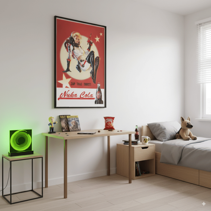 Nuka Cola. Nasáklá radiací... Plakát inspirovaný slavným nápojem - Nuka Cola ze hry Fallout.