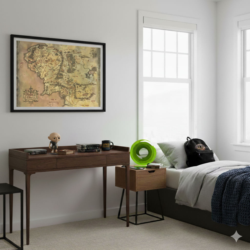 Krásný plakát s mapou Středozemě udělá radost fanouškům fantasy ságy Pán prstenů od J. R. R. Tolkiena.