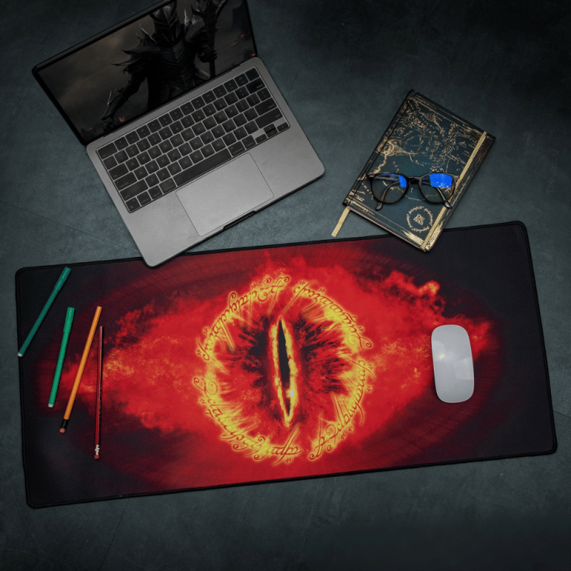 Podložka pod myš a klávesnici – Oko Saurona promění tvůj pracovní stůl ve výsostné území Temného pána. Dominantní rudé oko ze světa Pána prstenů ti pomůže udržet přehled a kontrolu – ať už při práci, nebo během epických bitev na obrazovce. Velkorysý rozměr 800 × 350 mm poskytuje dostatek místa pro myš i klávesnici. Díky hladkému textilnímu povrchu se myš pohybuje s dokonalou přesností, zatímco pogumovaná spodní strana zajišťuje stabilitu. Stylový a funkční doplněk pro každého fanouška Středozemě.