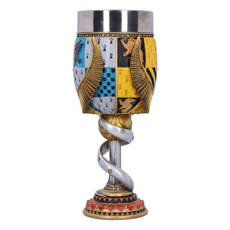 Jedinečný pohár pro milovníky famfrpálu a magického světa Harry Pottera! Čapněte Zlatonku tvořící stopku poháru pevně do ruky a připijte na úspěchy - ať už ty sportovní nebo jiné! Ručně malovaný pohár ze syntetické pryskyřice má vyjmutelný nerezový insert pro snadnou údržbu. Pohár není vhodný do mikrovlnné trouby ani do myčky nádobí.