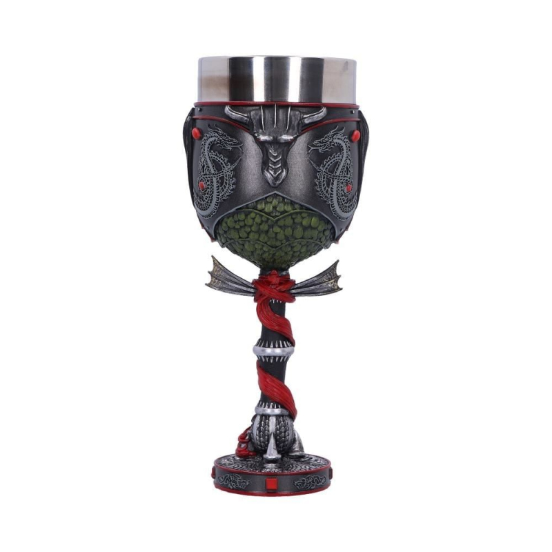 Připij na slávu a úspěchy Daemona Targaryena spolu s krásným ručně malovaným pohárem, který zdobí jeho rodový znak z populární fantasy série House of the Dragon (Rod draka) od Game of Thrones (Hra o trůny). Udělej radost sobě nebo ostatním dračím jezdcům tímto originálním společníkem! Nerezová vnitřní část je vyjímatelná, což umožňuje jeho snadnou údržbu. Pohár není vhodný do myčky nádobí ani mikrovlnné trouby!