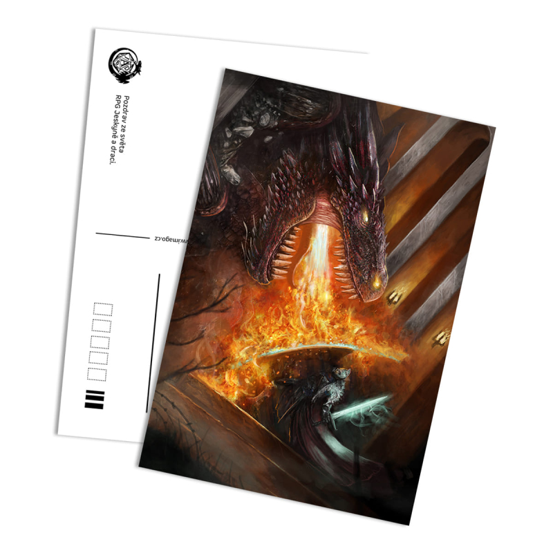 Slušnost velí poslat z každého výletu alespoň pohlednici. Tak proč neposlat pozdrav z vašeho questu v RPG Jeskyně a draci? Klasická pohlednice pro fanoušky RPG Jeskyně a draci.