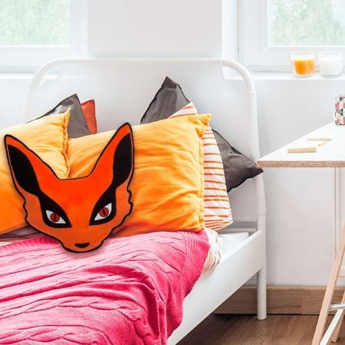 Polštář stylizovaný do hlavy démonické lišky Kyubi z populární japonské mangy Naruto.