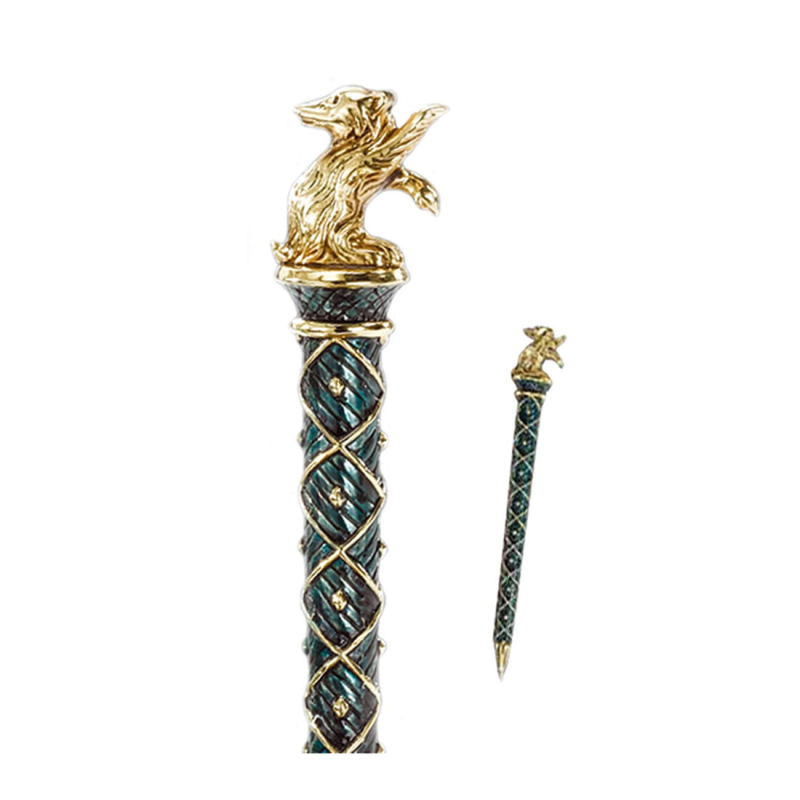 Magie zjednoduší hodně věcí, ale nenahradí vše, jako třeba užitečnou kuličkovou propisku ve tvaru magické hole Mrzimorských kolejí (Hufflepuff). Byla přímo vytvořena pro všechny čaroděje a fanoušky fantastického světa Harry Pottera. Zkuste si, jak se vám s ní bude psát a zjistíte, že se vaše ruka doslova roztančí po papíře. Dekorativní smaltovaný jezevec je pozlacený a posazený na masivní kovové základně. Propiska uložená v krabičce je vhodným dárkem pro nejrůznější příležitosti. Chybí vám zápisník? Vybírejte ze série krásně graficky vyvedených a inspirovaných knihami J. K. Rowlingové.