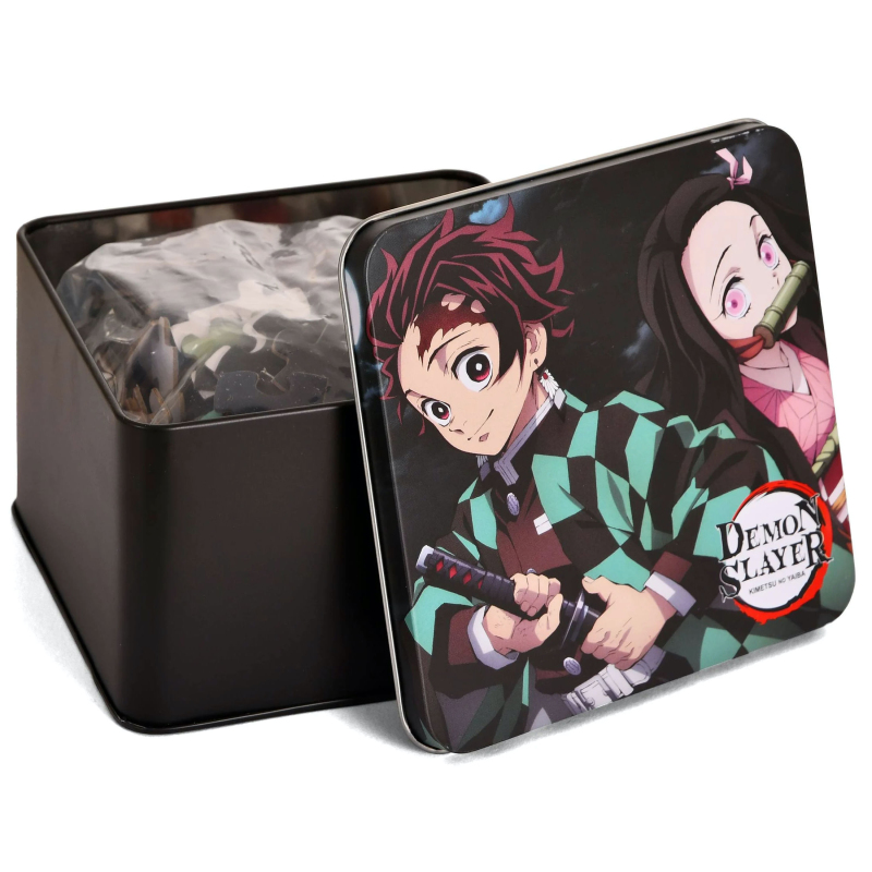 Složte si hrdiny z mangy Demon Slayer! Puzzle tvoří 250 dílků a udělá radost fanouškům oblíbené japonské série. Puzzle je v krásné a praktické plechové krabičce (12 x 12 x 7,5 cm), která sama o sobě bude ozdobou vaší sbírky. Složený obrázek měří 46 x 31 cm.
