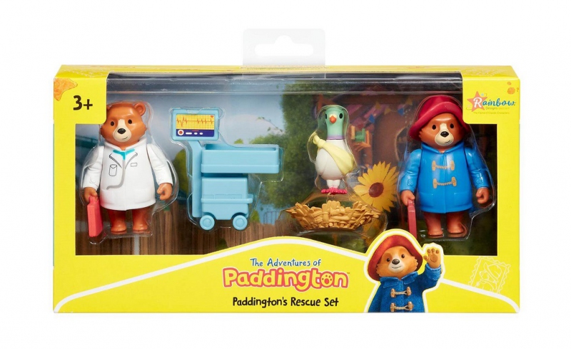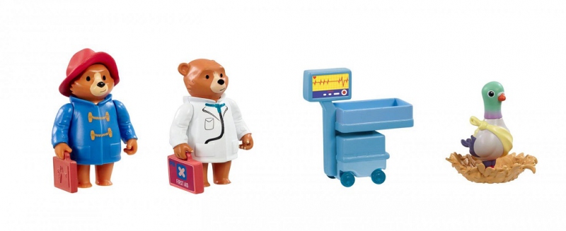 Tento zábavný záchranný set obsahuje nejen medvídka Paddingtona ve slavném modrém kabátku a červeném klobouku, ale také jeho kamaráda Pidgeontona! Stala se nehoda a chudák holub Pidgeonton si poranil křídlo. Naštěstí je po ruce pan doktor Paddington, vybavený lékárničkou, aby se jeho přítel znovu cítil lépe! K dispozici je také vyšetřovací stůl, ideální pro holoubkovu velikost, s pohyblivými kolečky a obrazovkou. Postavy medvídka mají pohyblivé paže a jsou velikostně kompatibilní s ostatními herními sadami kolekce The Adventures of Paddington. Herní sada je plná zábavy a děti inspiruje k nápadité hře.