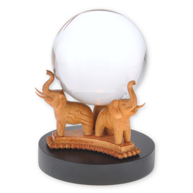 Toužili jste někdy nahlédnout do křišťálové koule profesorky Sybily Trelawneyové a spatřit výjev z vaší budoucnosti? Představujeme vám repliku orbitu, jaký jasnovidka používala k předpovídání budoucnosti ve filmu Harry Potter a vězeň z Azkabanu. Základnu tvoří podstavec se třemi slony se zdviženými choboty, mezi nimiž je umístěna průzračná skleněná koule. Jedná se o dekorativní výtvor, který bude ozdobou každé sbírky.