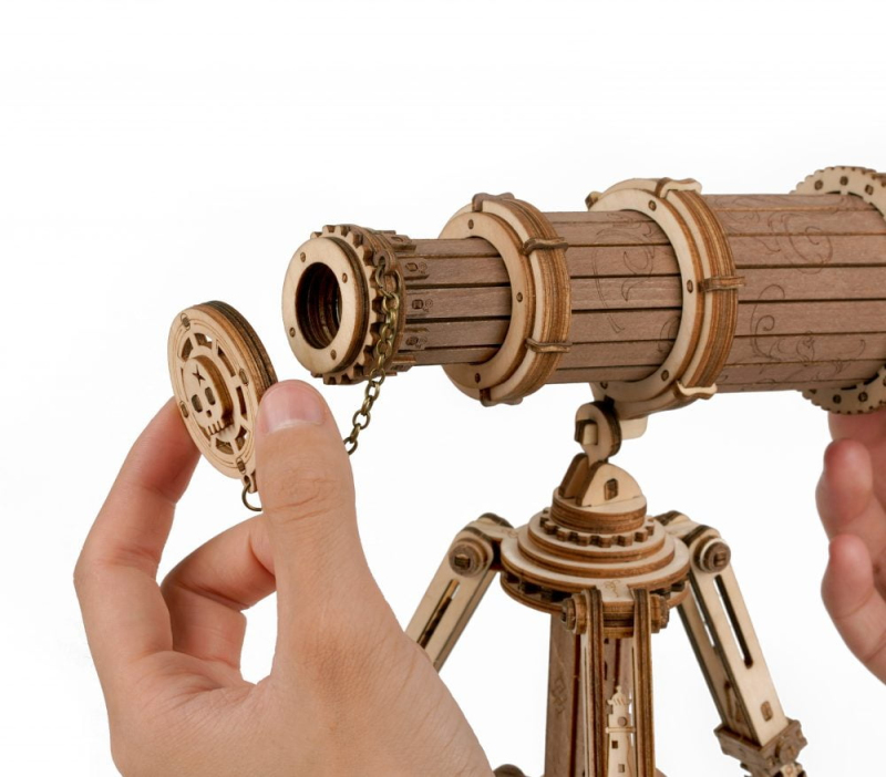 Pro všechny rozené navigátory. Stavebnice monokulárního dalekohledu z překližky. Dekorován pruhem kůže se štítkem a krytkou s reliéfem lebky. Je skladný a je dodáván i s praktickým skladným stativem. Jedinečný dárek pro všechny milovníky kutilství, luxusní interiérová dekorace do pokoje či kanceláře. Skládačka je dodávána v nesloženém stavu, balena v krabici. Vybaveno detailním návodem k sestavení.