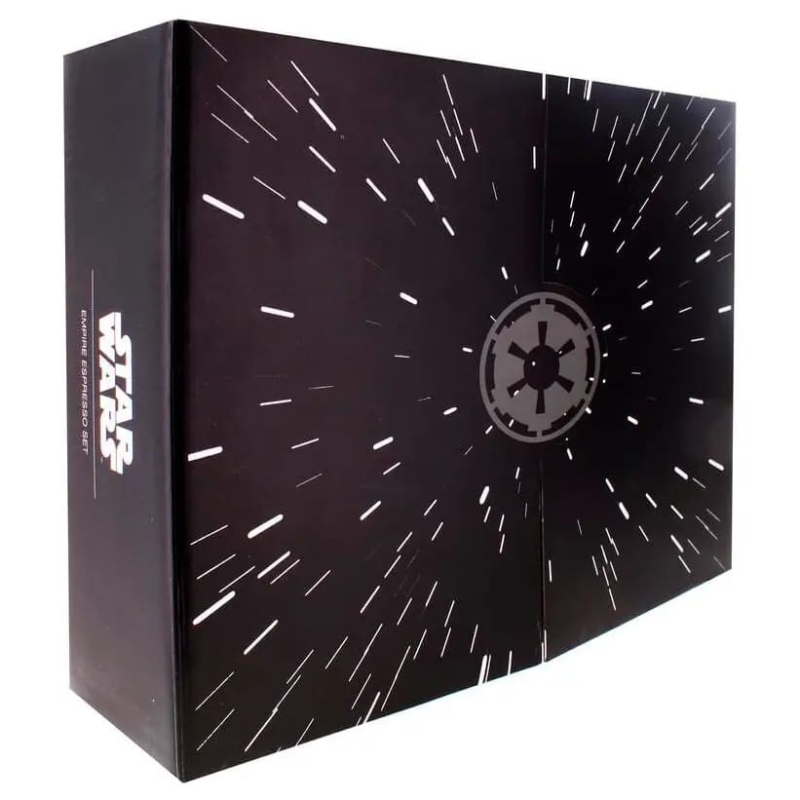 Jedinečná sada na espresso potěší fanoušky Star Wars. Uvnitř dárkového balení najdete 4 stylové hrnky s grafikou lorda Darth Vadera, vojáka Stormtroopera, imperiálního důstojníka a lovce lidí Boba Fetta. Součástí jsou také 4 talířky ve tvaru hvězdného křižníku Star Destroyer 4 kovové lžičky se symbolem Impéria. Skvělý dárek pro milovníky Hvězdných válek!