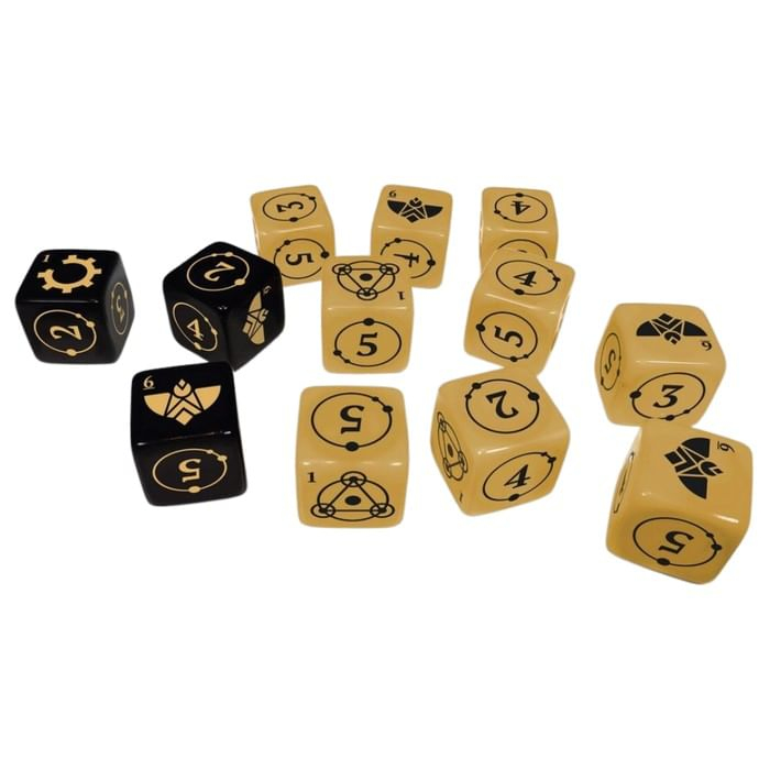 V sadě kostek pro hru na hrdiny Coriolis: The Great Dark najdeš 9 hnědých základních kostek a 3 černé kostky vybavení. Jedinečné kostky pro švédské RPG inspirované dobrodružnými objevitelskými výpravami z 19. století.