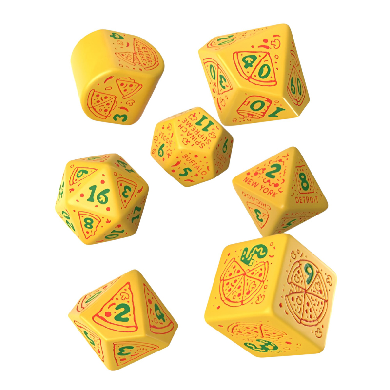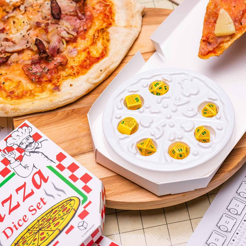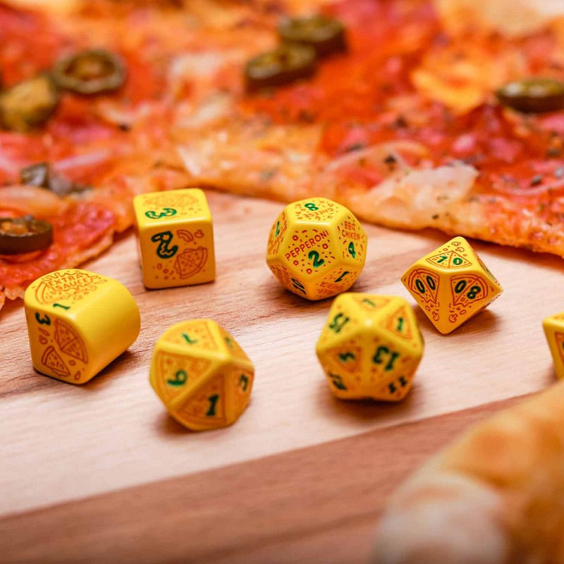 Vzdej hold pizze, nejoblíbenějšímu občerstvení při hraní RPG! Sada kostek Pizza - Margherita, inspirovaná tímto klasickým jídlem v jeho chutné podobě, přináší zábavu a neodolatelné chutě do světa her na hrdiny. Žluté kostky s červenými symboly a zelenými čísly, v unikátní krabičce připomínající italskou pizzu, ti umožní hodit si na styl pizzy, přísady a další extra lahůdky. Perfektní doplněk do každé sbírky a na hraní Dungeons and Dragons, Pathfinder RPG a dalších oblíbených rolových her! Ingredience: k4 (nový moderní styl), k6, k8, k10, k12, k20 a k%. A pro hráče, co radši extra salám, nabízíme i sadu kostek Pizza - Pepperoni! Upozornění: I když vypadají k zakousnutí, tyto kostky nejsou jedlé. Pro tvé zdraví a bezpečí je prosím nejez!