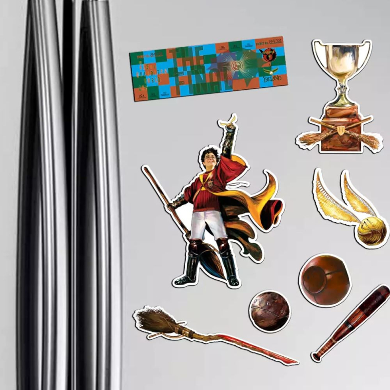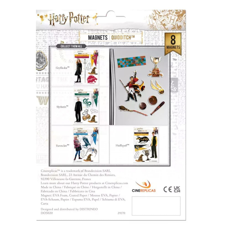 Sada obsahuje 8 pěnových magnetek s tématikou Harry Pottera a Famfrpálu. Sestavte si z magnetek scénu s Harrym, jeho létajícím koštětem, Zlatonkou či trofejí pro vítěze!