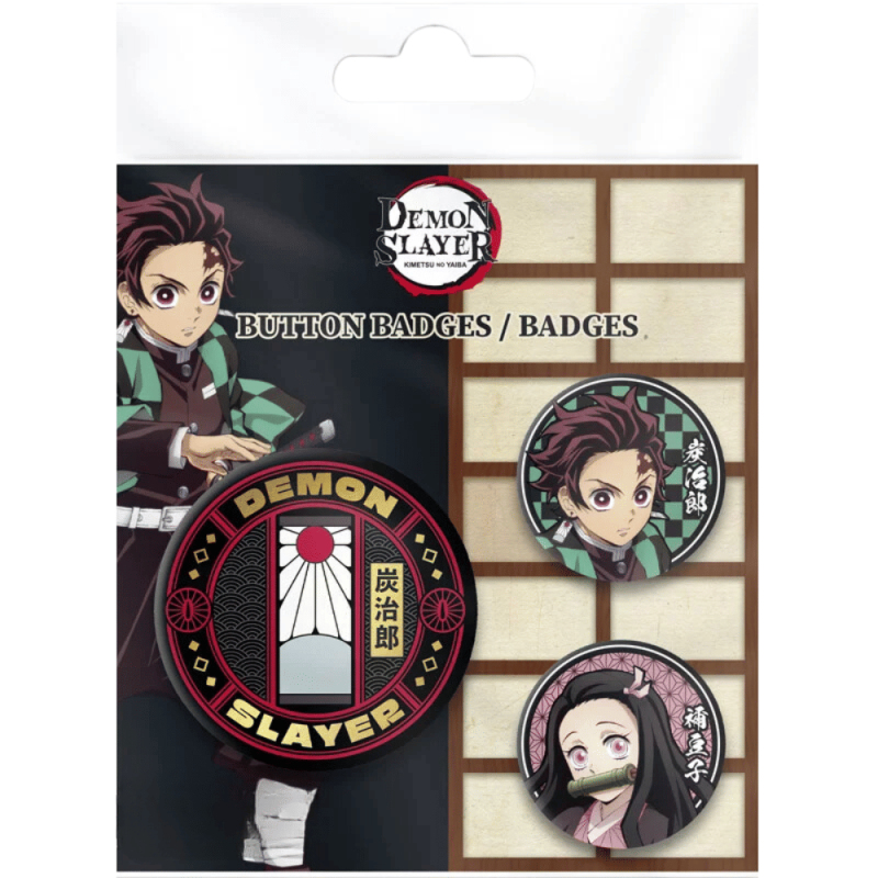 Sada obsahuje 3 placky pro fanoušky anime Demon Slayer. Jedna placka je o průměru 5 cm a dvě placky mají průměr 3,2 cm.