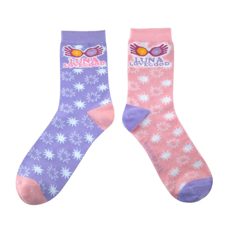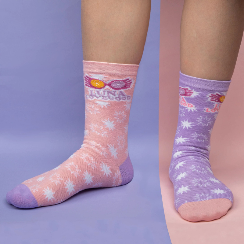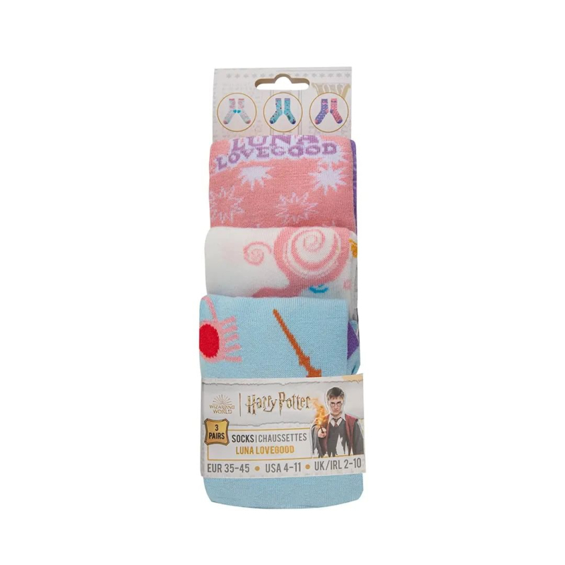 V sadě najdeš 3 páry krásně střelených ponožek od Lenky Láskorádové, věrné kamarádky Harryho Pottera. Na ponožkách nechybí Lenčina kouzelnická hůlka nebo třaba brýle Strašibrýle. Ponožky jsou vhodné pro velikost nohou 35 až 45.