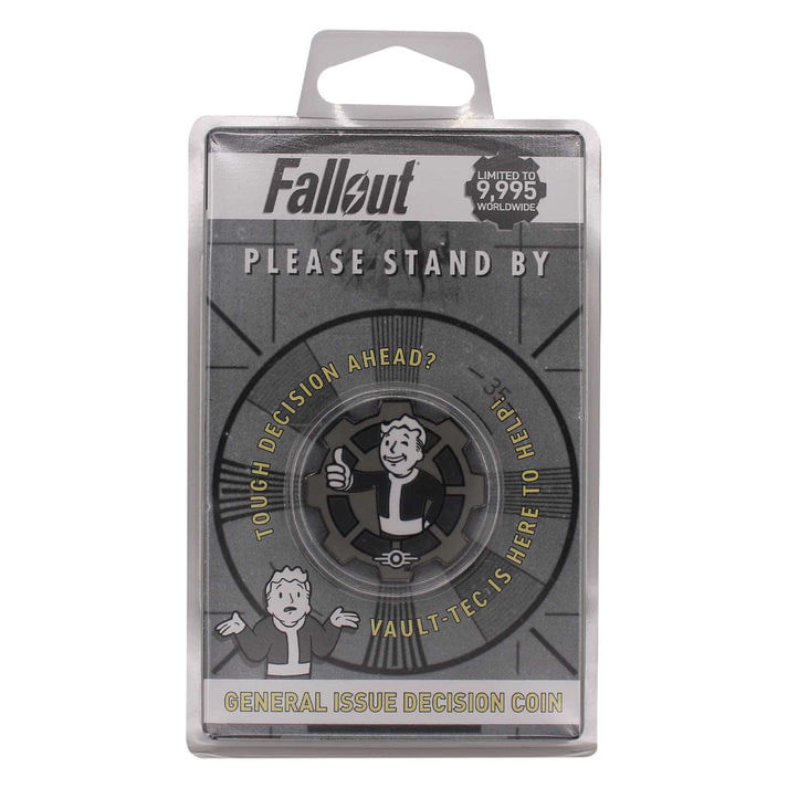 Vault Boy Decision Coin je oficiálně licencovaná sběratelská mince pro každého obyvatele Vaultu, který nerad dělá těžká rozhodnutí sám. Na jedné straně najdeš typický thumbs up, na druhé palec dolů – stačí hodit a je rozhodnuto. Mince má černobílé smaltové detaily, průměr 38 mm a tloušťku 3 mm. Každý kus je individuálně číslovaný (limit 9 995 ks celosvětově) a uložený v průhledné akrylové kapsli.