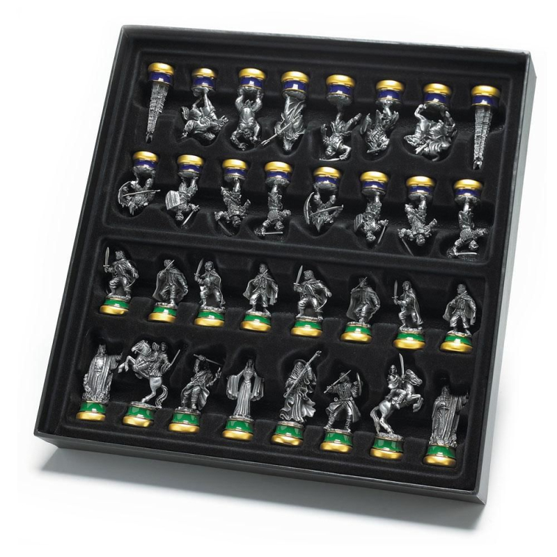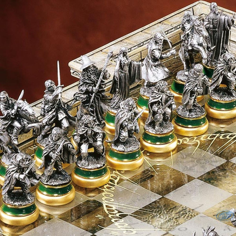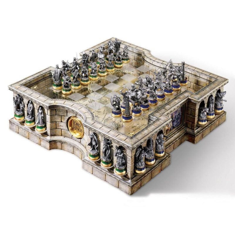 Tato jedinečná sběratelská šachová sada na motivy Pána prstenů je nádherným uměleckým dílem. Součástí sady je 32 detailně vyvedených miniatur z cínu, které jsou tak realistické, že byly osobně schváleny jednotlivými herci. Deska je vyrobena litého porcelánu s kovovými doplňky a plexisklem. Rozměry šachovnice jsou 38 x 38 cm. Oficiálně licencovaný produkt.