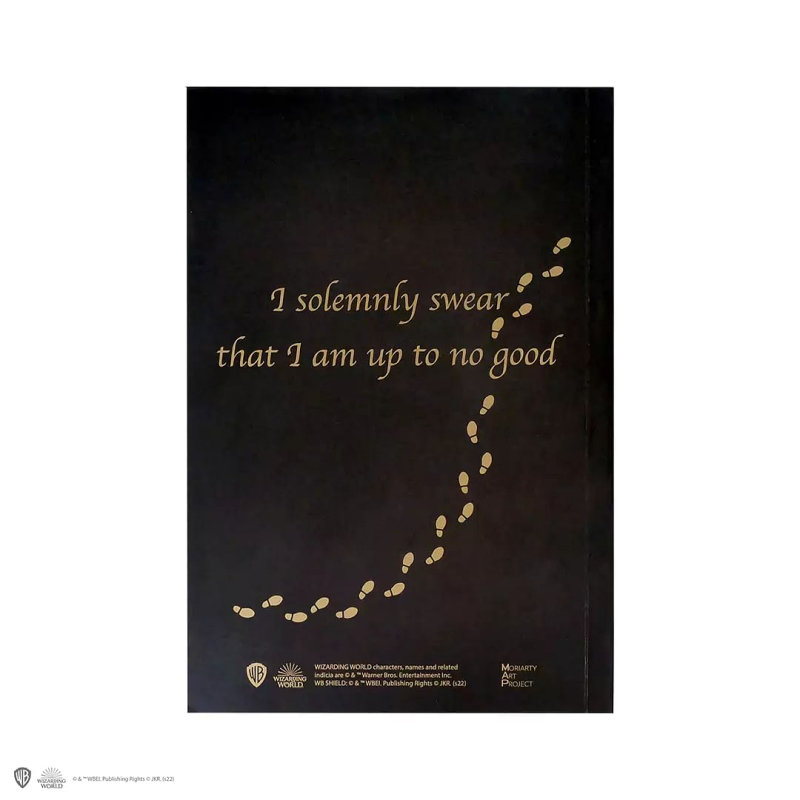 Slavnostně přísahám, že jsem připraven ke každé špatnosti... Zápisník v měké vazbě s motivem Harryho Pottera - Pobertův plánek bude skvělým společníkem pro tvé nápady a poznámky z hodin čar a kouzel v Bradavicích. Zápisník je linkovaný a design otisku boty je přítomen na každé druhé straně i na zadní straně obálky. Neplecha ukončena...