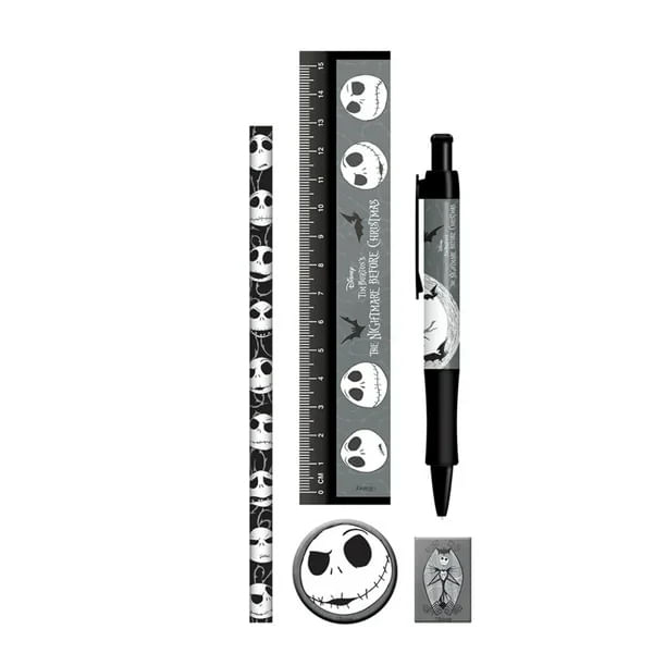 Zapomeň na obyčejné tužky a nudná pravítka! Tahle sada do tvého penálu přinese trochu temnoty, špetku šílenství a pořádnou dávku stylu z kultovního filmu Ukradené Vánoce (The Nightmare Before Christmas). Školní potřeby jsou dodávány v praktickém uzavíratelném pouzdru. Stačí jediný pohled na tuhle sadu a i během nudné matiky se přeneseš do světa, kde vládne Jack Skellington! Obsah balení: tužka ořezávátko guma pravítko kuličkové pero