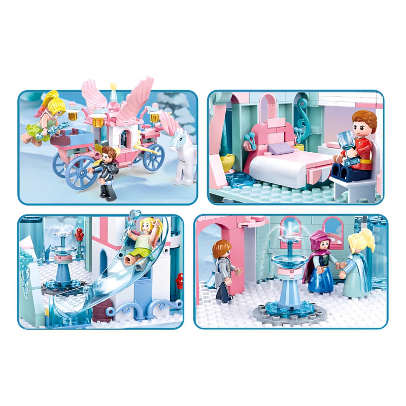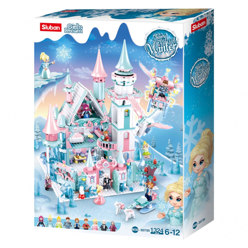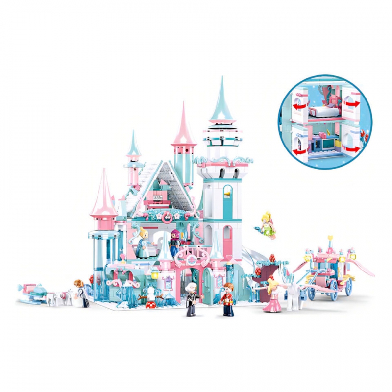 Tato rozsáhlá stavebnice Sluban obsahuje 1324 dílků a 9 figurek: princezny, rytíře, kočár, dva psy a křídlatého koně. Hrad po sestavení měří přibližně 30 × 30 × 36 cm, má pohyblivé dveře i stěny pro snadný přístup.