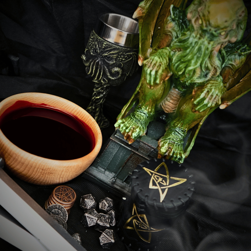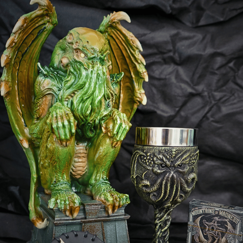 Soška prastarého božstva z kultovních hororových příběhů Call of Cthulhu od H. P. Lovecrafta je zlověstně usazena na tématickém podstavci. Blanitá křídla a mrtvolně zelené zbarvení umocňují její jedinečné detaily, jejichž autorem je známý gothic a fantasy tvůrce James Ryman. Skvělý dárek pro fanoušky mýtu Cthulhu a všechny, kteří trpí obsesí Lovecraftovým dílem!