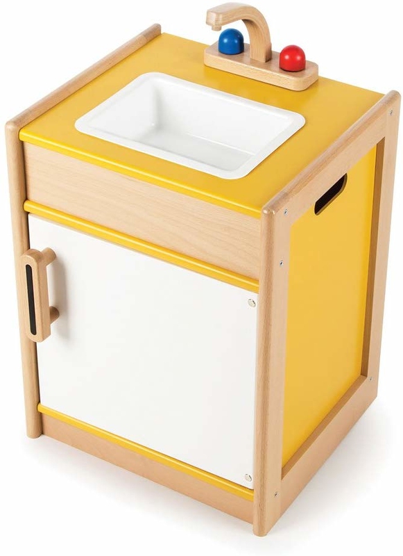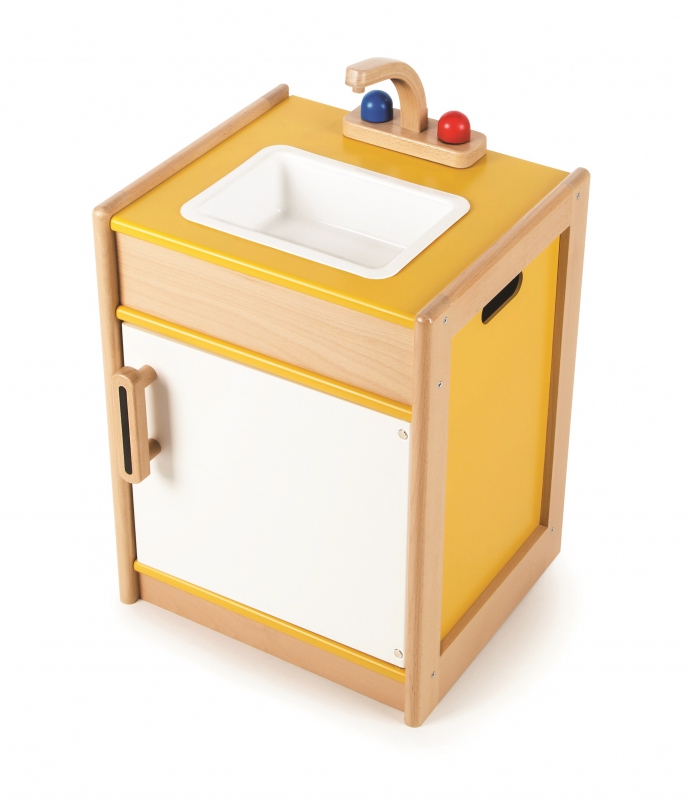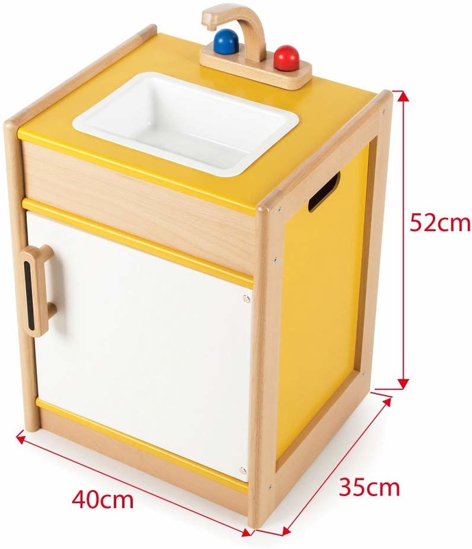 Žádná kuchyň není kompletní bez dřezu, kde by se dalo umýt všechno špinavé nádobí. Tento dřevěný dřez obsahuje kohoutek, otevíratelné přední dveře a úložné místo pod dřezem, kde děti mohou uložit houby, saponáty a jiné věci, které potřebuje každá kuchyň. Zároveň je možno vyndat plastové umyvadlo a lehce ho omýt! Skvělý způsob jak děti naučit, že po jídle je důležité po sobě uklidit. Na boku má rukojeti k lehčímu uchopení. Podporuje kreativní a představivou hru. Kombinujte s ostatními Tidlo kuchyňskými spotřebičemi a vytvořte hravou kuchyň! Po vybalení je nutno složit. Vyrobeno z kvalitních materiálů z odpovědných zdrojů. Odpovídá evropské bezpečnostní normě.