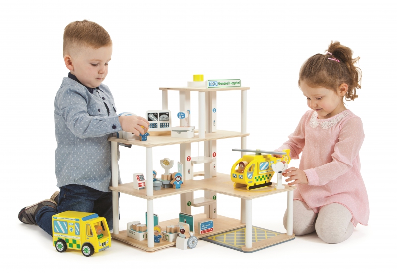 Tři poschodí plné vybavení, které Vám pomohou vyléčit oblíbené postavičky. Tento třiceti dílný set obsahuje záchranný vrtulník, sanitku, lůžka, lůžkové clony, magnetickou rezonanci, operační světla a lůžka, EKG monitor, výtah, přistávací plochu a parkoviště/plochu pro příjezd sanitky. Dále také rentgen, postavičky lékařů, sestřiček, invalidní vozík, nosítka a pět pacientů. Podporuje představivost, koordinaci ruka-oko, jemnou motoriku a zručnost. Vyrobeno z kvalitních materiálů z odpovědných zdrojů. Odpovídá evropské bezpečnostní normě.