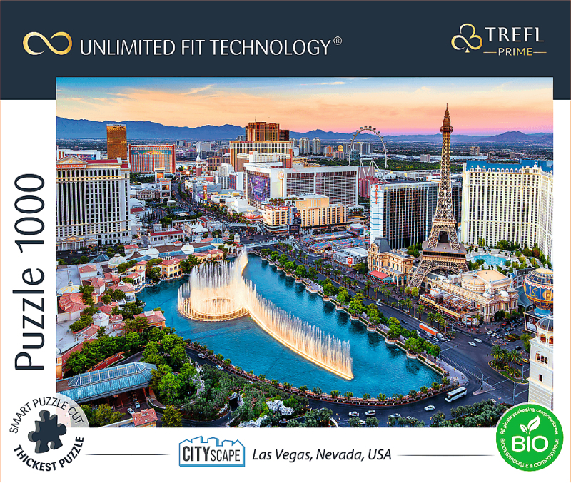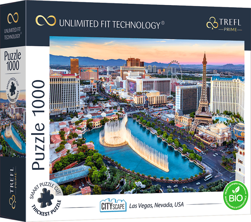 TREFL Unlimited Fit Technology (UFT) jsou puzzle neomezených možností. Díky unikátní technologii si můžete z více obrázků vytvořit velké puzzle koláže, kde hranice stanovíte Vy. Speciální razící technologie umožňuje napojování libovolného množství puzzle motivů ze série UFT. Nejvyšší kvalita - puzzle je vyrobeno z nejsilnějšího modrého kartonového podkladu. Každý dílek má unikátní tvar. Puzzle dílky drží u sebe - poskládané obrázky je možné pohodlně přemisťovat, aniž by se složený motiv rozsypal. Bio balení - bez svrchní plastové folie. Vnitřní sáček je zcela biologicky rozložitelný a kompostovatelný. Jak na to? Jakmile poskládáte puzzle, opatrně oddělte okrajové části od složeného motivu. Prostřední části složených puzzle napojte jeden ke druhému dle vlastního přání. Nakonec připojte v potřebných místech okrajové dílky a je hotovo. Spojením šesti tisícových puzzle máte rázem originální "šestitisícovku". Ilustrační video Rozměr složeného puzzle cca 68,3 x 48 cm