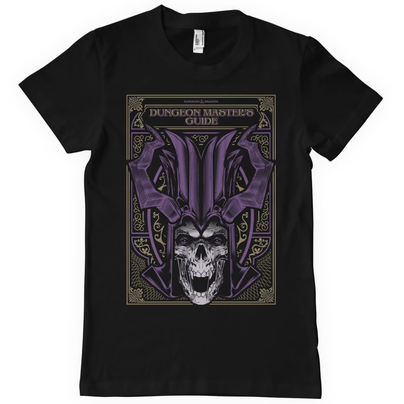 Hezké černé tričko s grafikou příručky Dungeon Master s Guide pro hru na hrdiny Dungeons and Dragons bude slušet gamemasterům i všem fanouškům dobrého RPG.