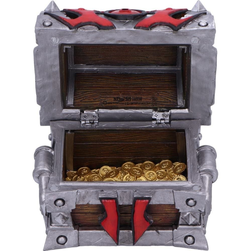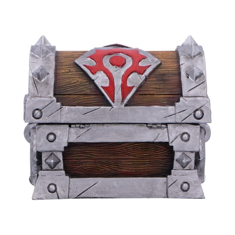 Truhlička se symbolem Hordy z úchvatného světa World of Warcraft se hodí na tvé poklady Azerothu, cennosti nebo i kostky, žetony a další herní drobnosti. Skvělý doplněk hráčské domácnosti i rekvizita pro hernu. Truhlička ve stříbrné a rudé barvě je vyrobena z odolného resinu a zdobí ji celá řada jedinečných detailů - nechybí imitace klíčového otvoru.