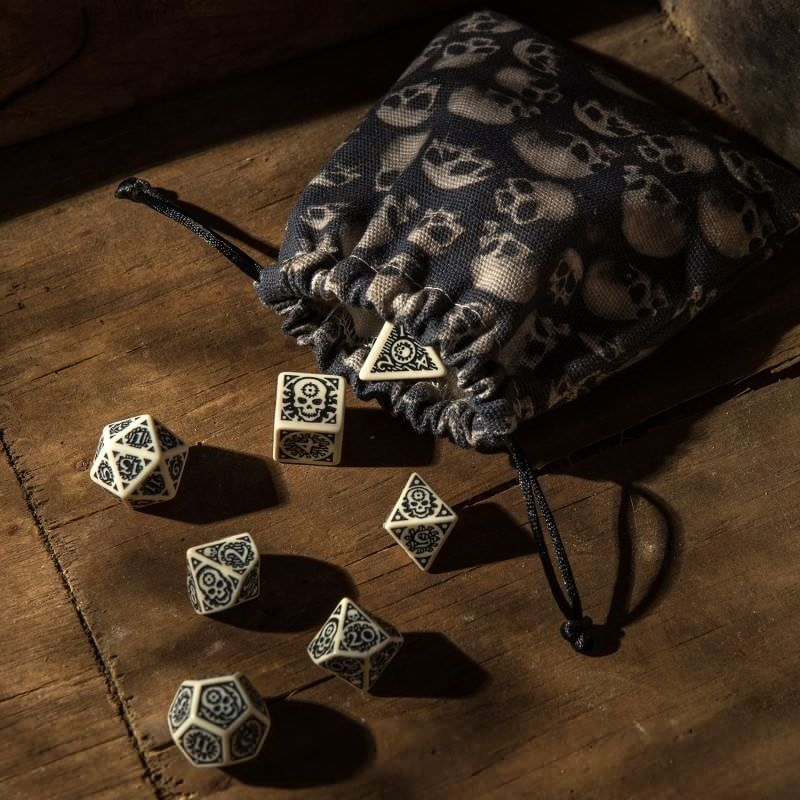 Váček na kostky s motivem lebek je vhodný pro atmosferické a hororové hry. Je vyroben z umělého pavoučího vlákna (výrobce respektuje arachnofobiky, proto zvolil tento materiál). Kvalitní tisk na kvalitní látce vydrží dlouhé roky. Rozměry: 11,5 x 11 cm x 0,5 cm.