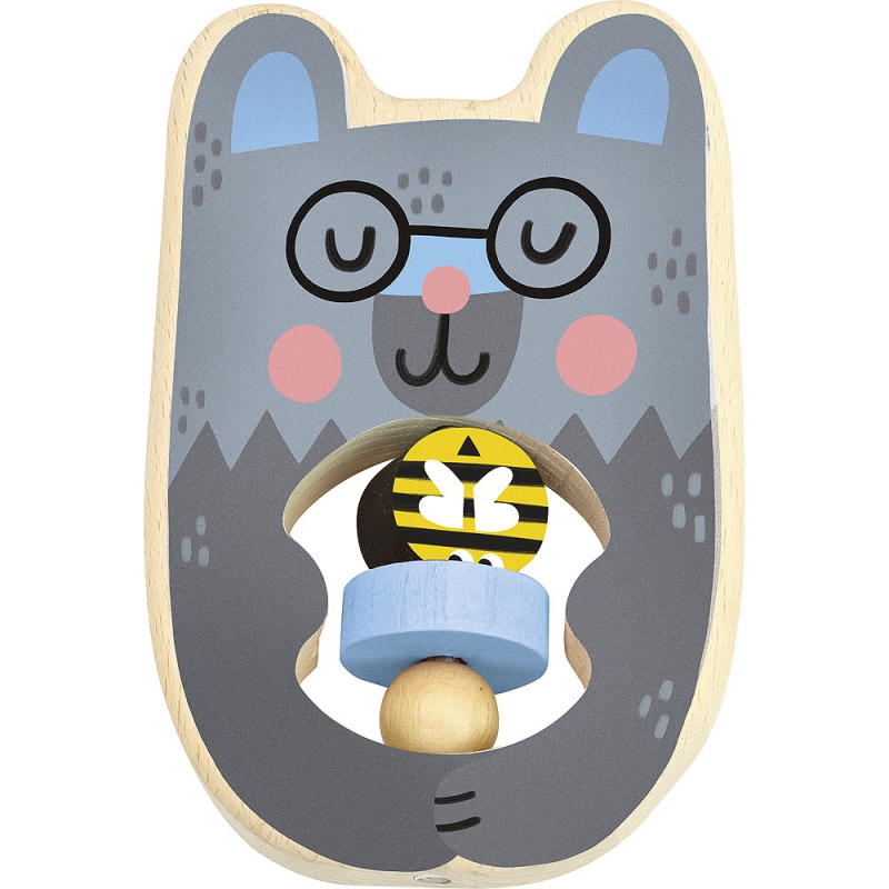 Krásné dřěvěné chrastítko s motivem medvídka, navrženo Michelle Carlslund.