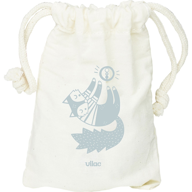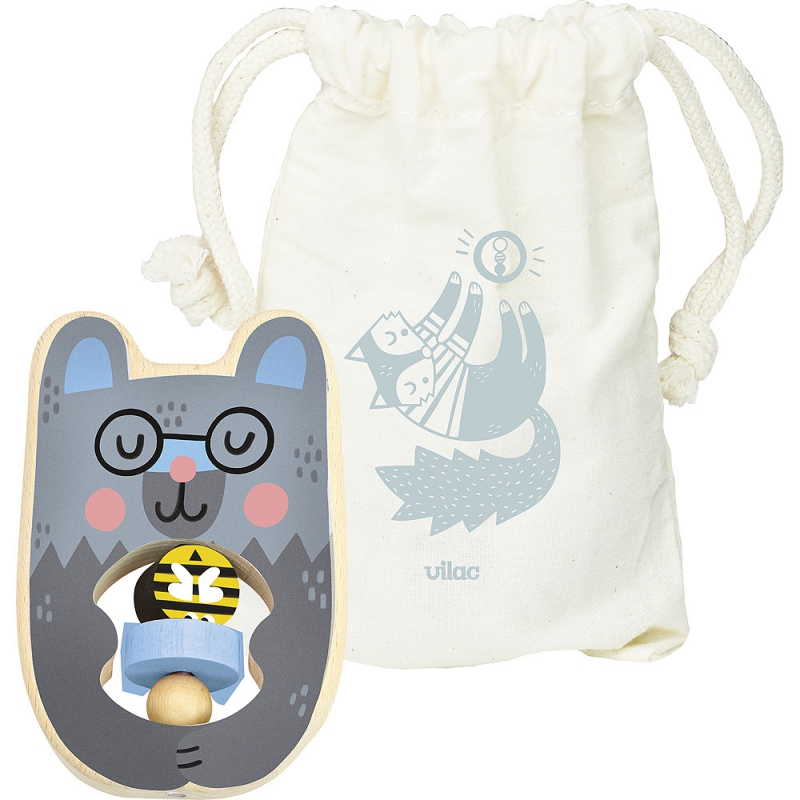Uprostřed 3 barevné korálky, které příjemně chrastí. Baleno v textilním pytlíku, je ideálním narozeninovým dárkem. Vyrobeno ve Francii.
