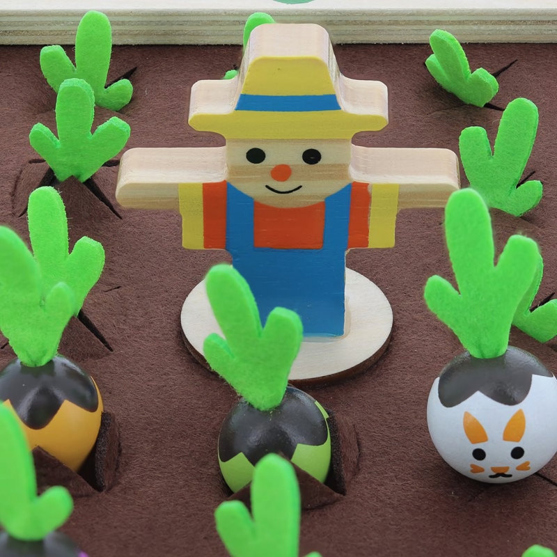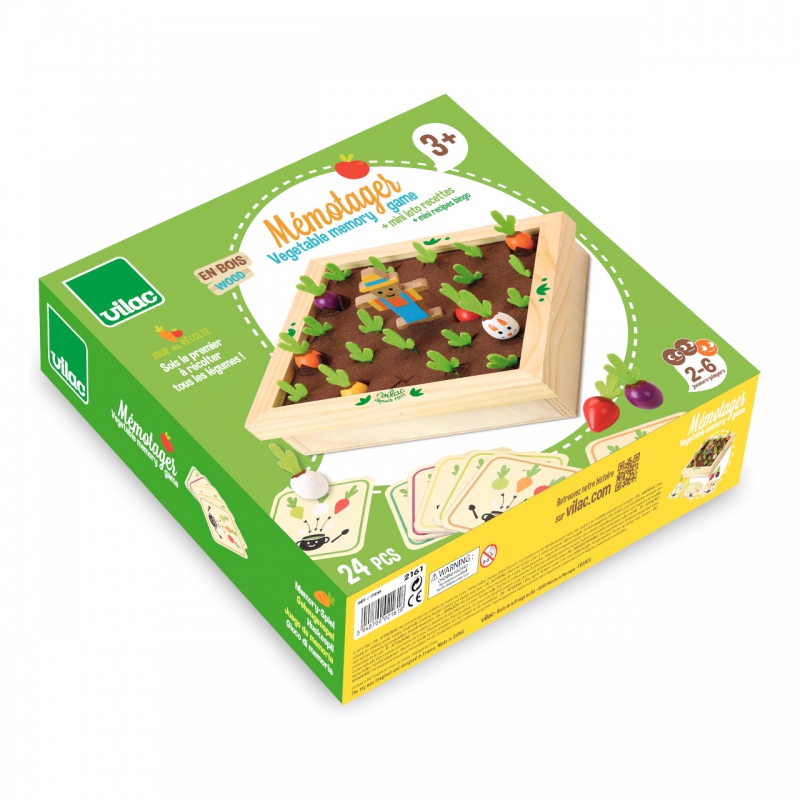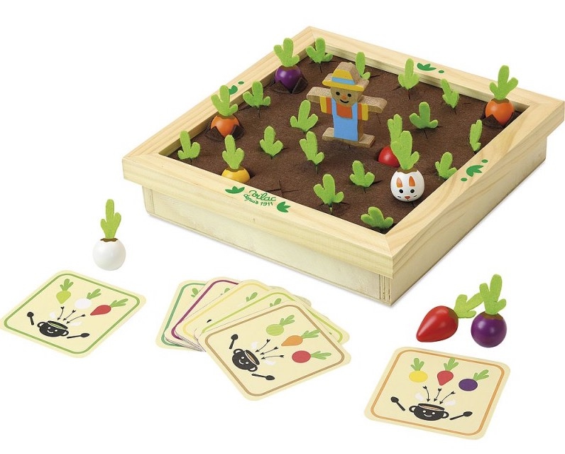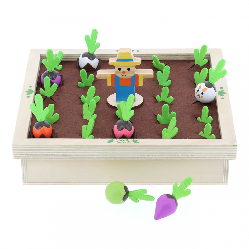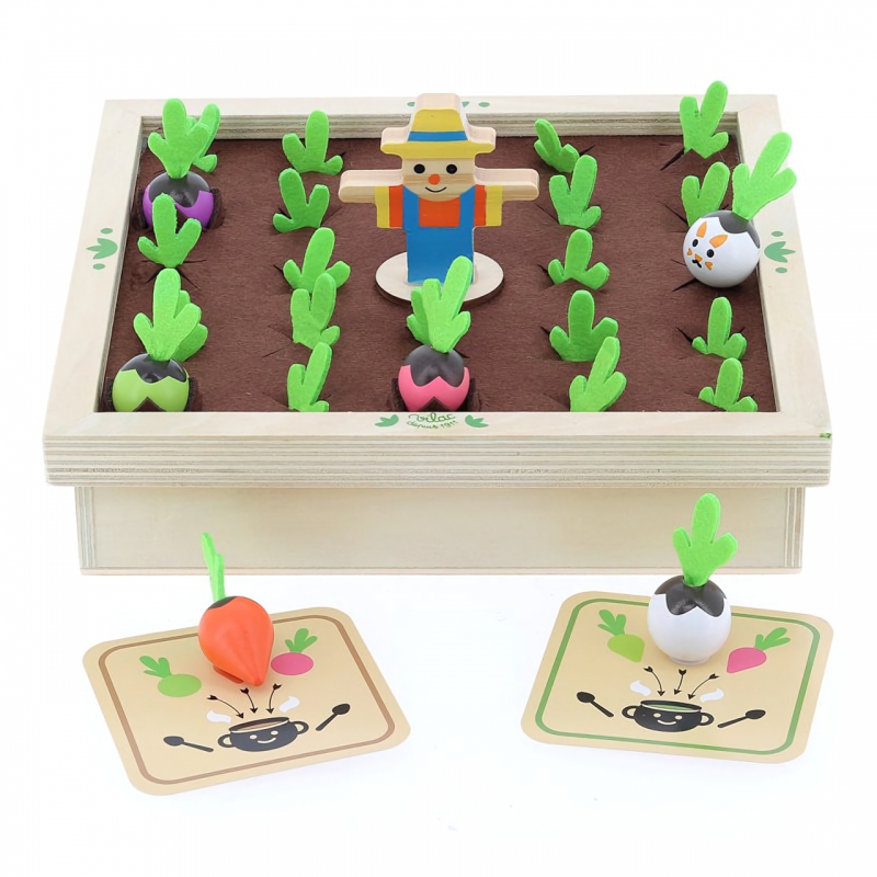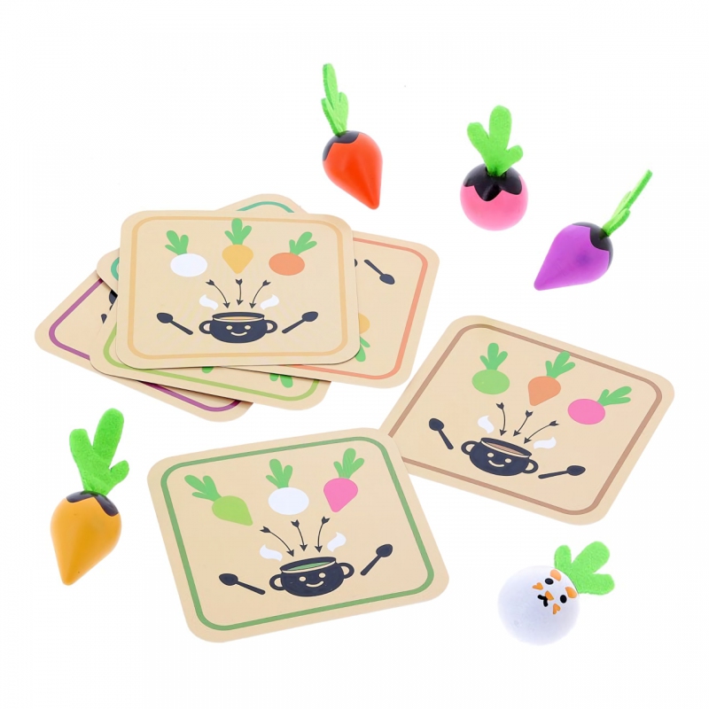 Zábavná dětská hra! Pěstujte zeleninu a hledejte tu správnou do výborné polévky podle receptu! Nebo si zahrajte zeleninové pexeso. Hra obsahuje dřevěnou zahrádku s plsťovou hlínou, 25 ks zeleniny a 7 karet receptů.