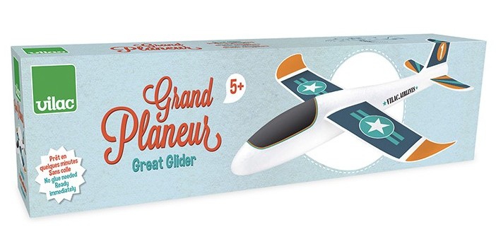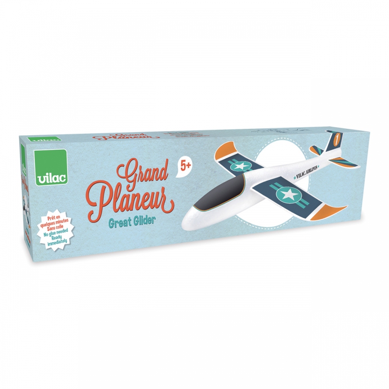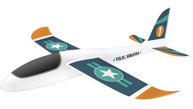 Velký kluzák připraven k odletu. Vyroben z polystyrenu, ozdoben nálepkami. Nepotřebujete lepidlo.