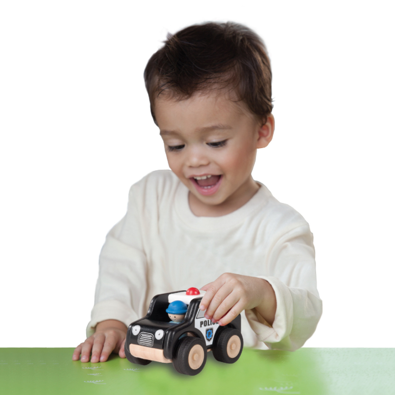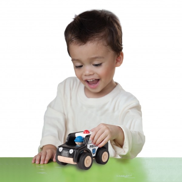 Dřevěné autíčko policie ze série Miniworld od firmy Wonderworld.