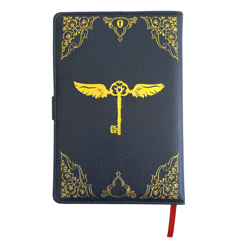 Pěkný linkovaný zápisník pro fanoušky Harry Pottera v deskách z umělé kůže má číselný zámek, který neodemkne ani odemykací kouzlo Alohomora. Zápisník má na horním okraj stránek dny a měsíce k zaškrtnutí, ideálně tedy poslouží jako deník či diář. Jednoznačně potěší detaily jako zlaté zdobení obálky i okrajů stránek a všitá stužková záložka.
