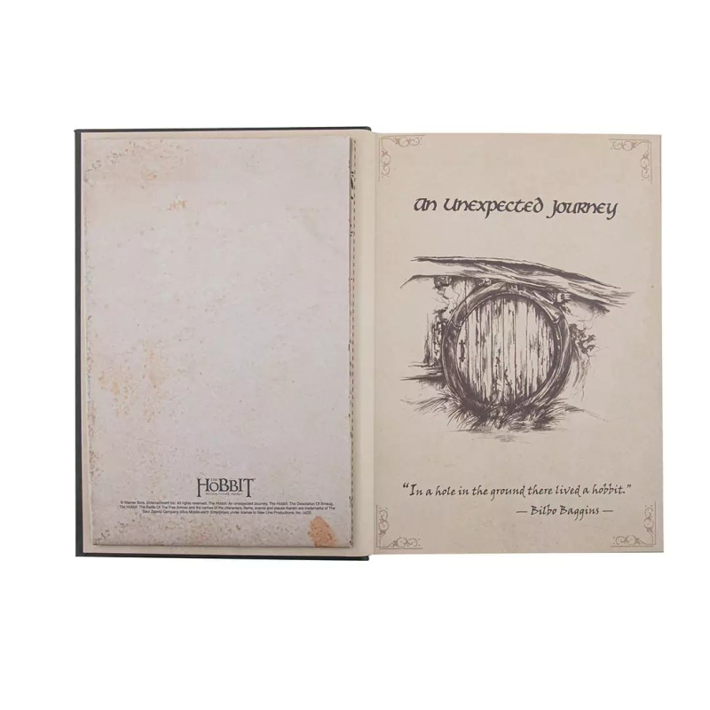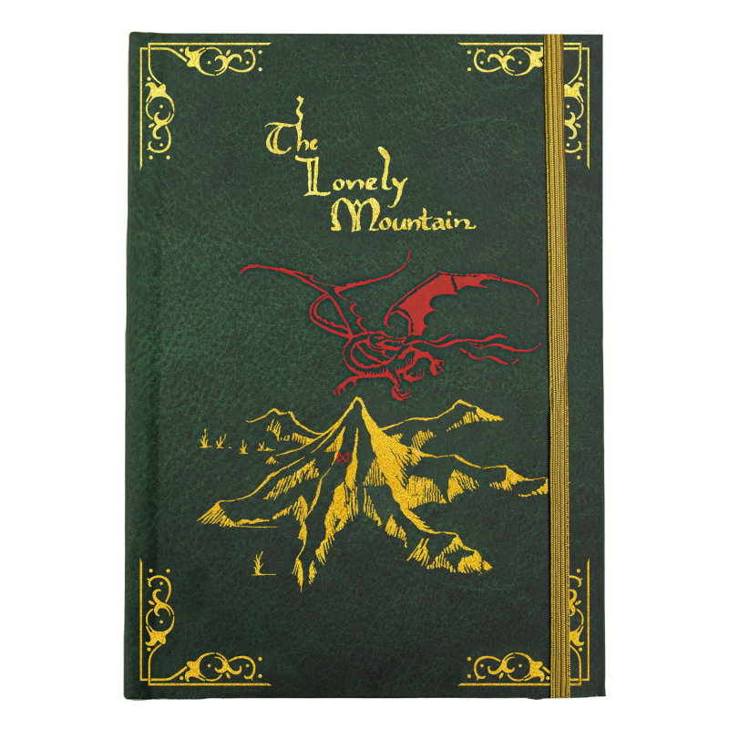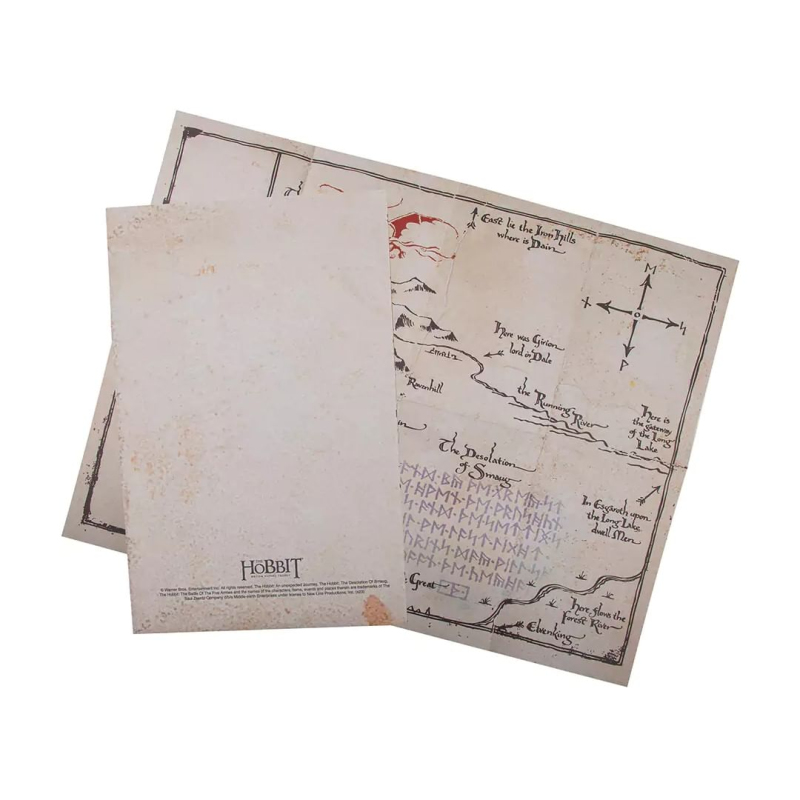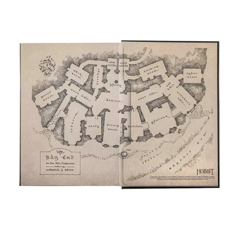 Výpravný zápisník pro čtenáře a fanoušky Hobita obsahuje řadu krásných grafických prvků, včetně Thorinovy mapy. Zápisník je v pevných deskách, linkovaný a zavírá se pomocí gumičky.