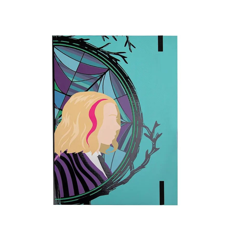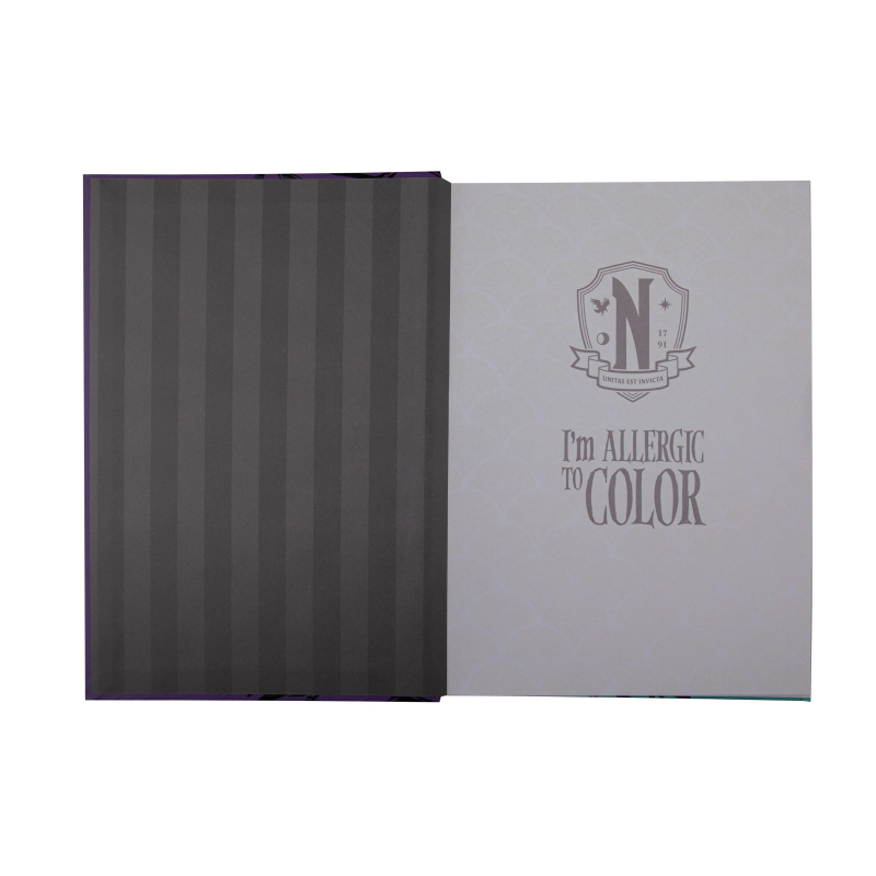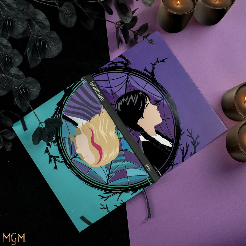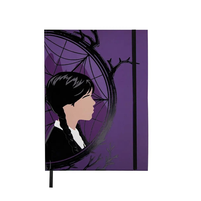 Hezký zápisník pro fanoušky seriálu Wednesday má pevné desky a bude skvělým společníkem pro poznámky, nápady či inspiraci všeho druhu. Zápisník je překlápěcí a tak může sloužit třeba na sdílení myšlenek dvou kamarádek jako jsou Wednesday a Enid. Zápisník je linkovaný, má zavírání pomocí gumičky a součástí je záložka.