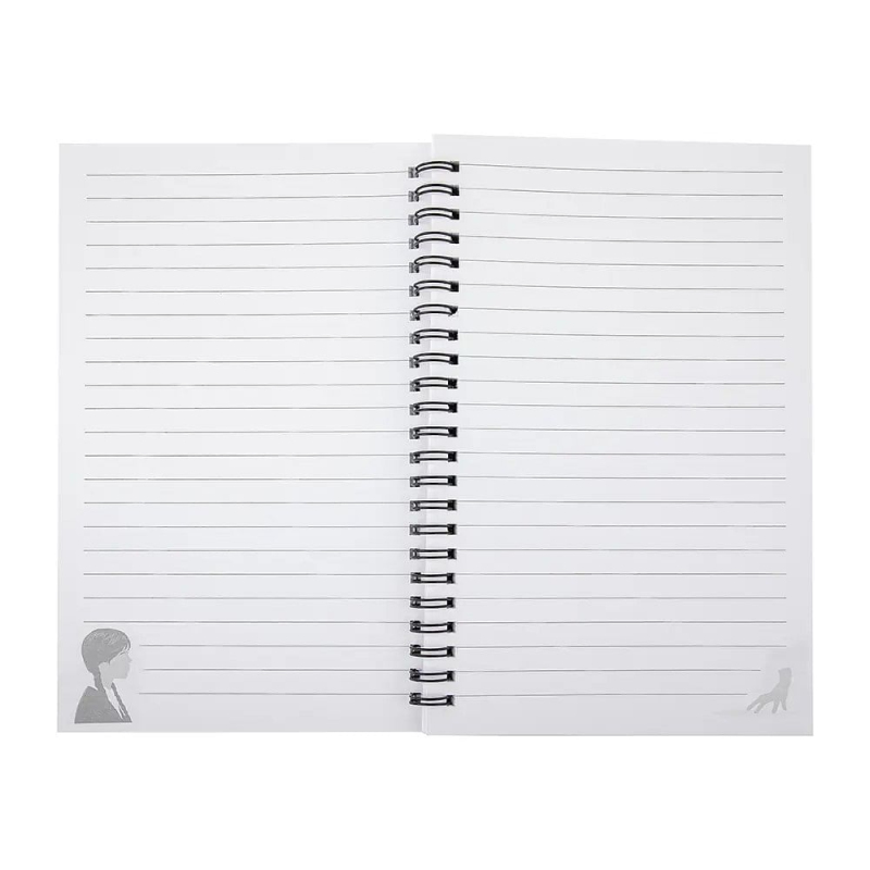 Je čas na psaní! Originální linkovaný zápisník v kroužkové vazbě udělá radost fanouškům seriálu Wednesday. Skvělý dárek a praktický pomocník.